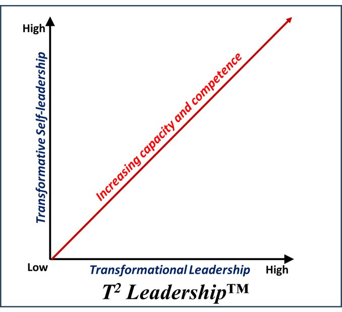 T2 Leadership™ is based on the dual premise that: 1) organizations need transformational leaders who can create learning, adaptable, and high-performing organizations by developing people and teams toward their full potential and employing specific transformational leadership interventions into organizational strategy and design; and 2) that effective transformational leaders must be able to effectively lead themselves first. Thus, T2 Leadership first focuses on transformational self-leadership to help leaders transcend their limitations and grow holistically toward their full human and leadership potential (transformative self-leadership), and second on cultivating the attitude, mindset, knowledge, and skills to effectively lead people, teams, organizations, and communities to higher performance or achievement (transformational leadership). The more one is able to transform themselves through transformative self-leadership the more they are able to transform others through transformational leadership. Thus, transformative self-leadership times transformational leadership equal T2 Leadership and Leader Development™.